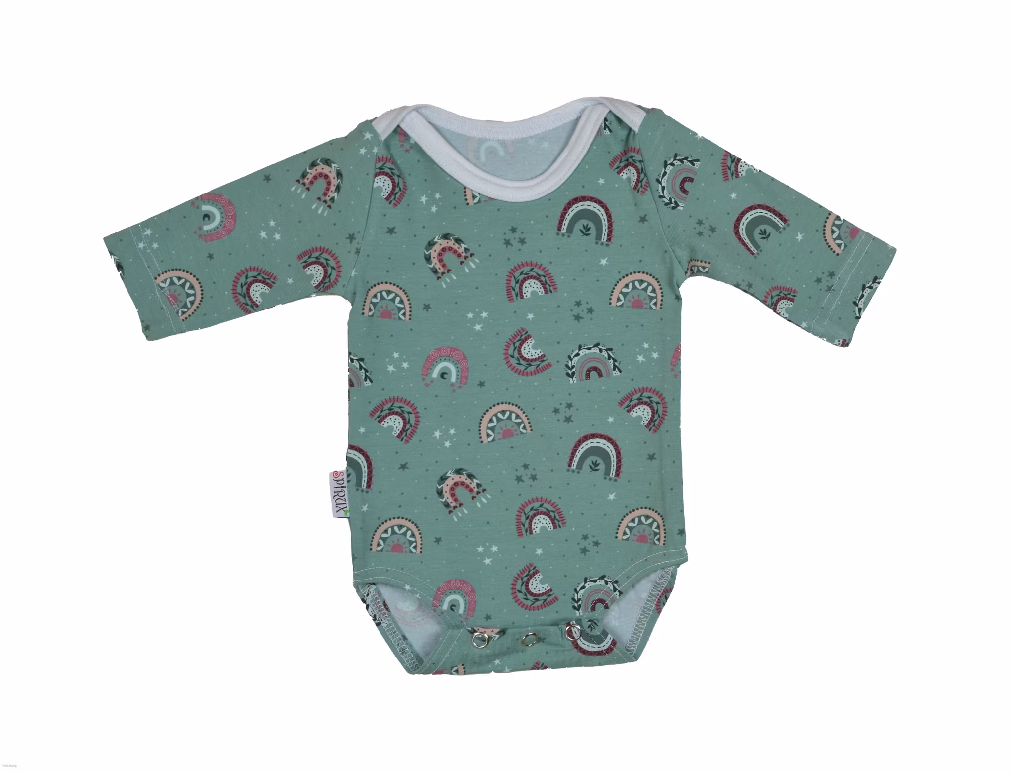 Hemsydd kuvertbody med knäppning i grenen.